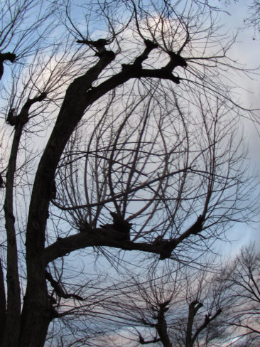 THEME: The contorted silhouettes of trees, after leaves have fallen, are quietly surviving the effects of seasonal change – a recollection of nature’s mutable power. The limbs and tree fragments form expressive two-dimensional and abstract designs. Some images emphasize realistic close-up details that reveal the trees’ anatomical features, which are surprisingly human-like, while other images display the distinctive characteristics of animal contours. Presented with directness and simplicity, one group of photographs appears almost monochromatic whereas another group of photographs, more complex, introduces subtle color tonalities. Trees are the memory of earth’s past, and they linger in the collective memory of mankind.